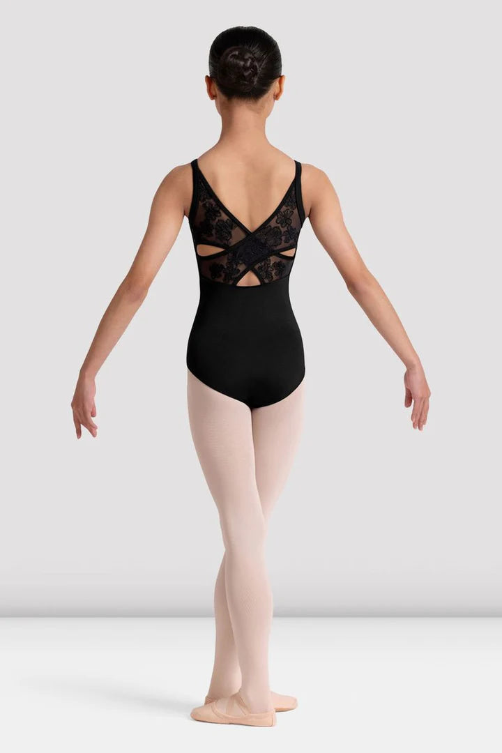 The Bloch Girls Jazz Floral Cross Back Leotard features delicate camisole straps, a scoop neck with sweetheart detail and a cross over back fashioned from soft mesh panels embellished with floral embroidery. Discover our Bloch's Camellia dancewear collection, each piece features soft, elegant designs that move with the body, accented by charming camellia floral embroidery.