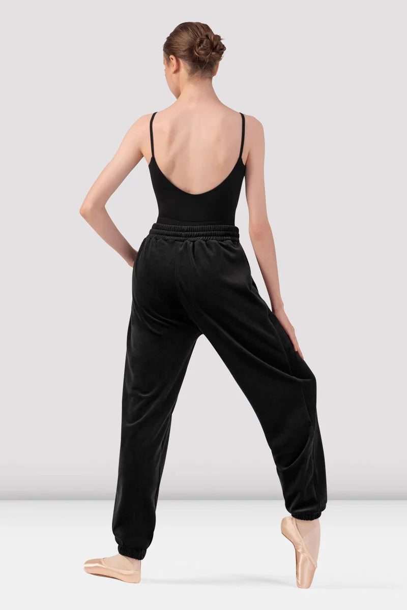 The Bloch Ladies Gloria Velvet Sweatpants bring comfort and style to studio warm-ups and off-duty moments alike. These sweatpants boast a relaxed silhouette, functional dual side pockets with a wide, ruched waistband with drawstring for adjustable styling.
